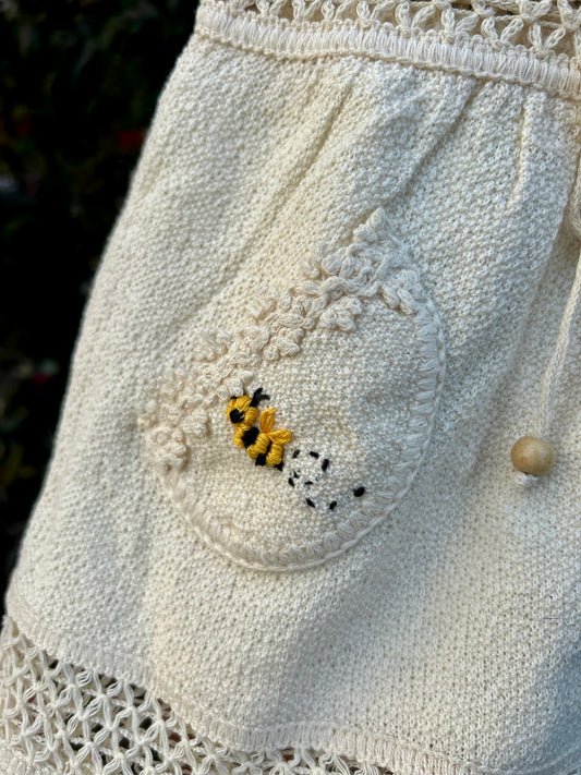Ladybug Dress with Yellow Flower Pockets -4Y