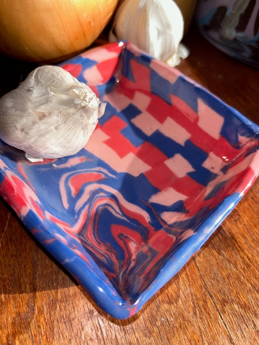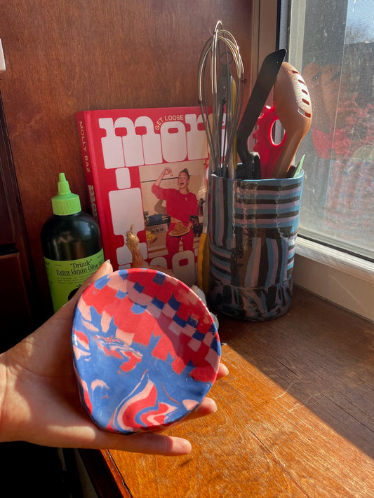 Nerikomi Porcelain Spoon Rest - Pink + Blue + Red