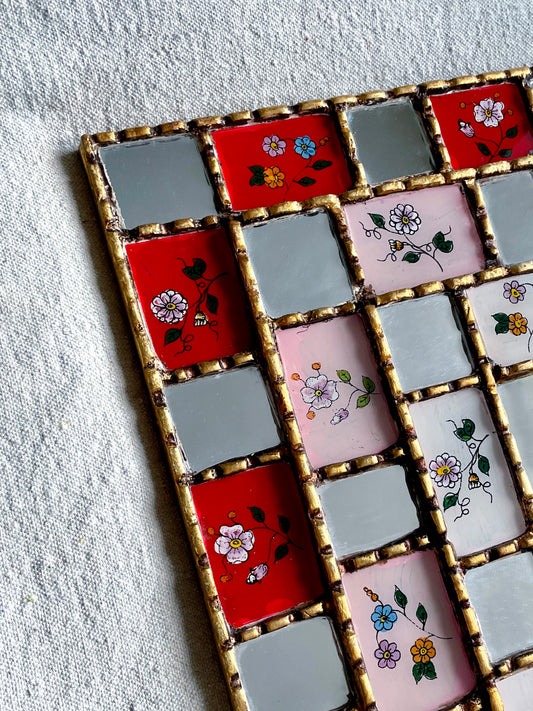 Sold outXL Floral Checkered Mirror - Red