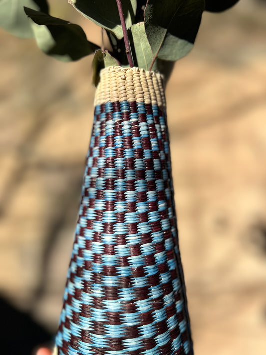 Sold outCheckered Straw Vase - blue/brown