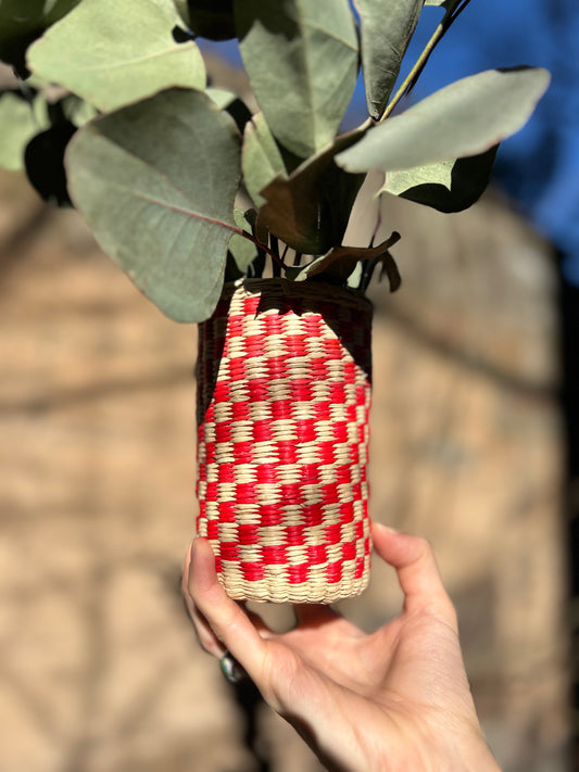 Sold outCheckered Straw Vase - mini